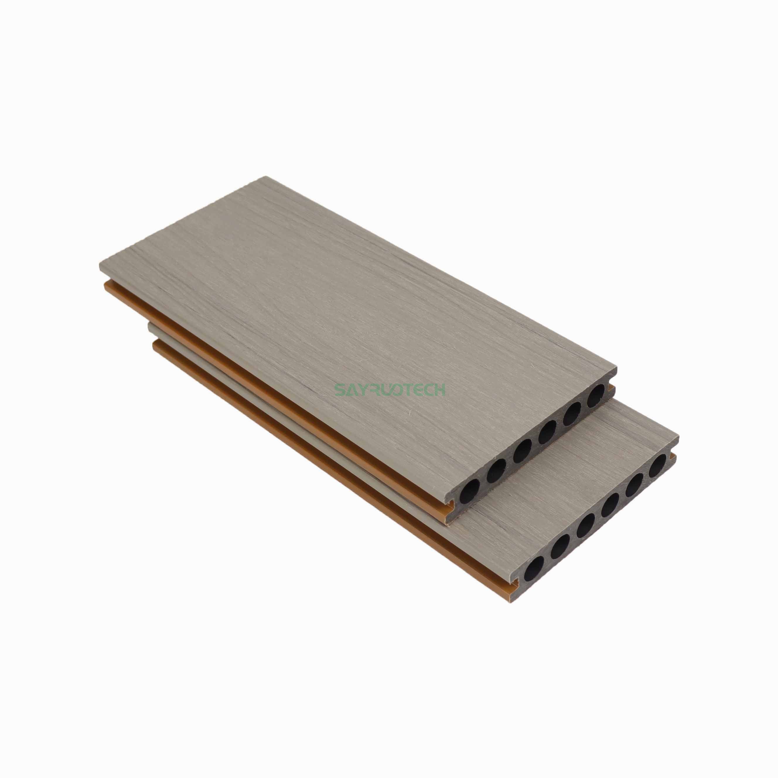 Wuhu/NanjingThis solid WPC co-extrusion decking features a robust 23mm thickness and a practical 138mm width, striking the perfect balance between sturdiness and seamless installation—its solid core ensures enhanced load-bearing capacity, making it suitable for both residential and commercial use. To cater to diverse project needs, full customization is available: choose from flexible lengths to minimize waste and fit unique spaces, select from a wide range of colors (including natural wood tones and contemporary shades), and opt for realistic wood grain patterns, embossed textures, or smooth finishes to align with your design aesthetic. The co-extrusion process adds an extra layer of protection, boosting its resistance to water, scratches, and UV damage, while the solid structure eliminates hollow spots, enhancing overall durability and reducing noise underfoot.