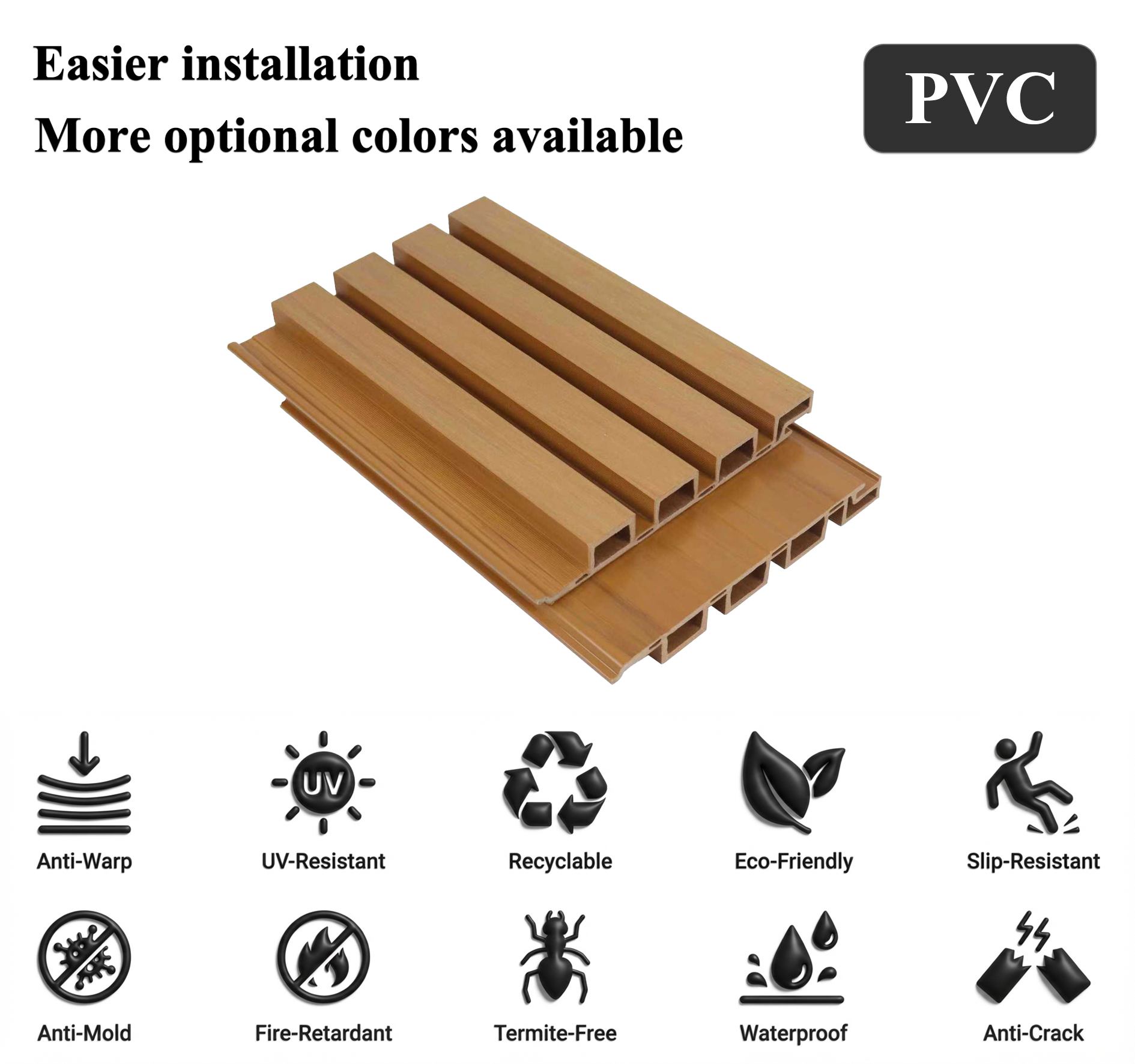 15-20daysDiese aus hochwertigem, neuem PVC-Harz gefertigte, gerillte Außenfassadenverkleidung bietet hervorragende Witterungsbeständigkeit, UV-Schutz und Wasserdichtigkeit. Ihre präzisen Rillen verbessern die Optik, kaschieren Unebenheiten und erleichtern die Reinigung. Dank des leichten, ineinandergreifenden Designs lässt sie sich schnell auf Außenflächen montieren. Sie ist ungiftig, korrosionsbeständig und farbecht und eignet sich ideal für Gewerbefassaden und stark frequentierte Außenbereiche.